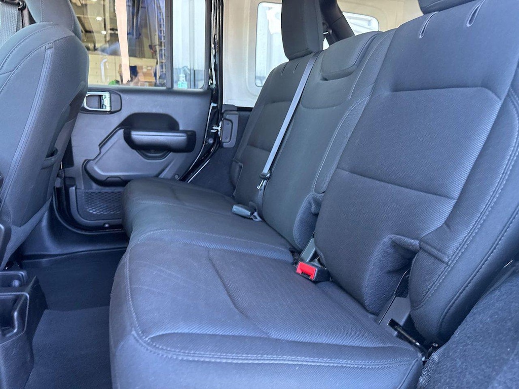 Inside, you'll find Mopar all-weather floor mats, perfect for keeping your Jeep's interior clean after muddy trail runs or sandy beach excursions. The cloth low-back bucket seats offer comfort and durability for long drives and rough terrain.