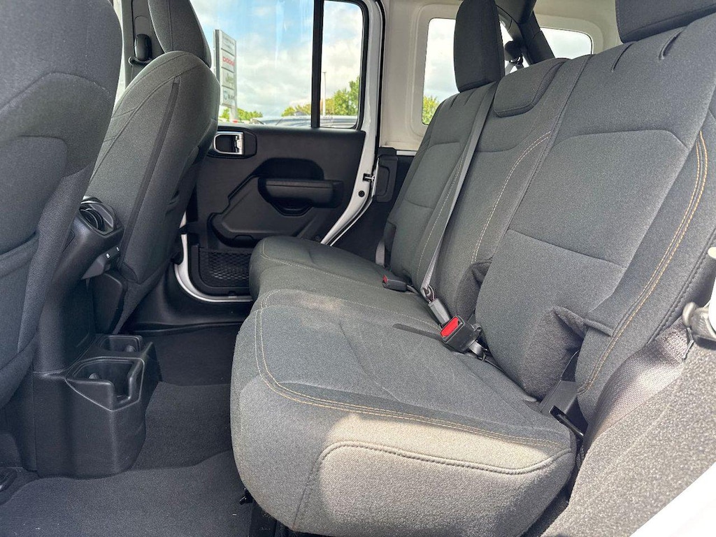 Additional features that set this Wrangler apart include fog lamps, deep-tinted sunscreen windows, and a full-size spare tire mounted outside. The 60-40 folding split-bench rear seat provides flexible cargo options, perfect for hauling gear or accommodating passengers.