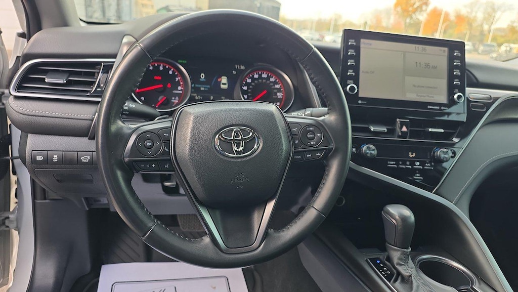 Other standout features include dual-zone automatic climate control, a power moonroof, and a smart key system with push-button start. The sport-tuned suspension and 19-inch alloy wheels give this Camry a sporty edge, while the sleek body styling with a lip spoiler adds to its athletic appeal.